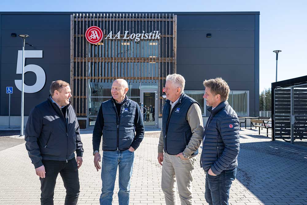 Bergsryggen har projektlett AA Logistiks nya logistikcenter på Finnslätten i Västerås. Fastighetsägare är Castellum och projektet är en del av utvecklingen av hela området där flera internationella industribolag har sin verksamhet. Från vänster: Björn Söderholm, Magnus Nilsson, Kenneth Öholm och Johan Bertilsson.