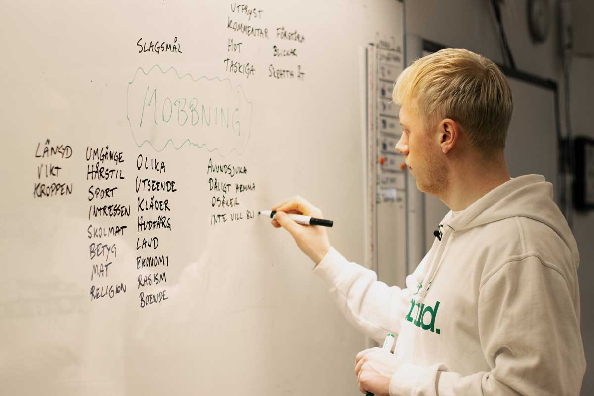 – Ofta när vi är ute i klasserna uppstår det jättebra diskussioner med eleverna. En del berättar om att de har varit mobbade tidigare, andra har det tufft hemma. Det finns så många berättelser där ute.