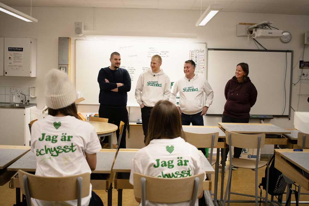 – Vi pratar bland annat om mobbning, psykisk ohälsa och utanförskap. Klassen tar också fram kriterier för hur man vill vara mot varandra framåt, berättar Viktor Spångberg, bandyspelare och koordinator för “Schysst framtid”.